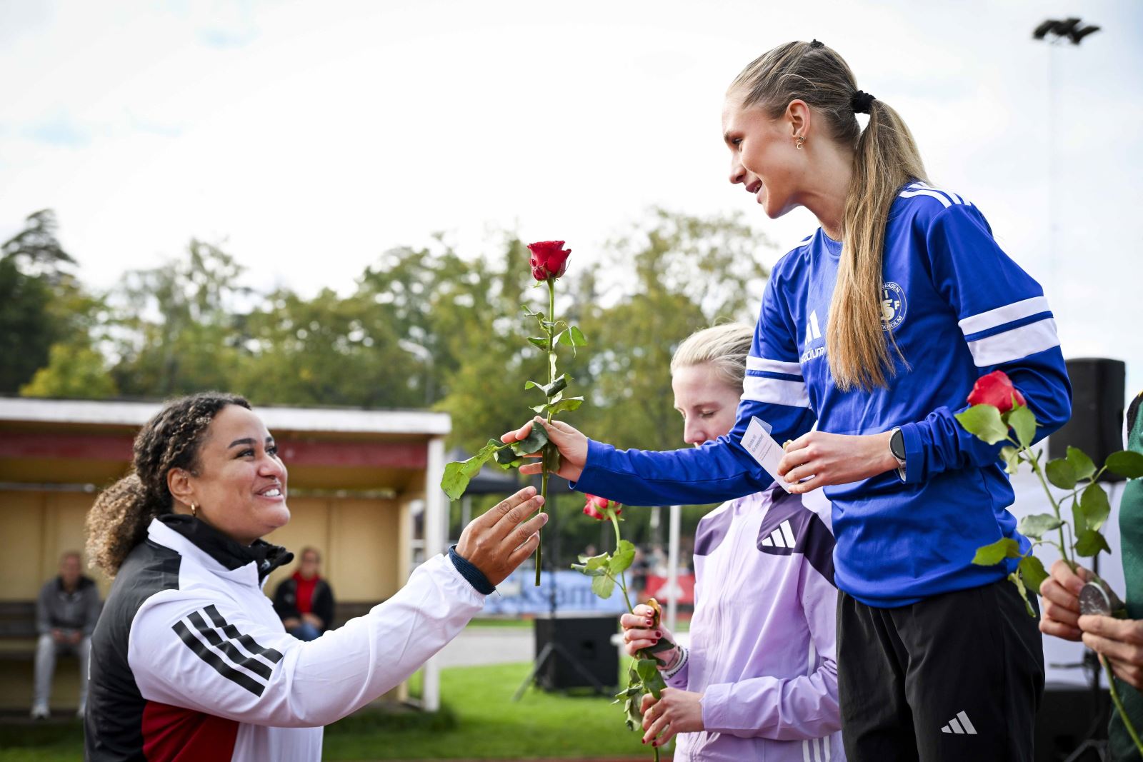 Vanessa Kamga VM fyran i diskus var prisutdelare vid årets Hässelbylopp. Foto DECA Text och Bild